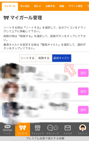 ・マイガール一覧からマイガール管理を開く