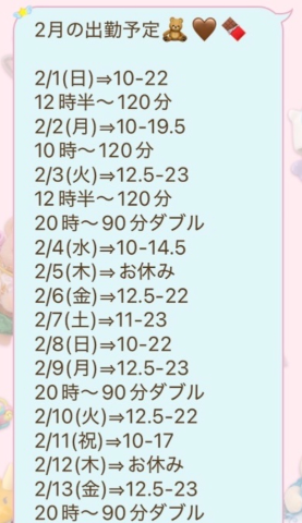 遅くなりましたが、2月の出勤予定です🧸🤎🍫