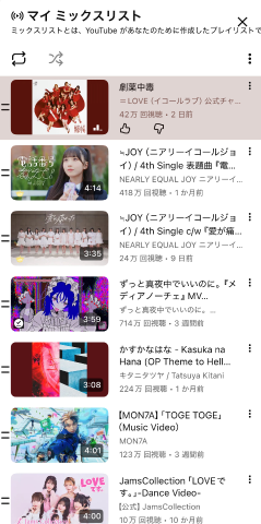 マイミックスリストはこのような感じでした🎧