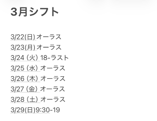 3月4月のシフト♡