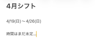 4月はまだシフト提出してなくて時間未定