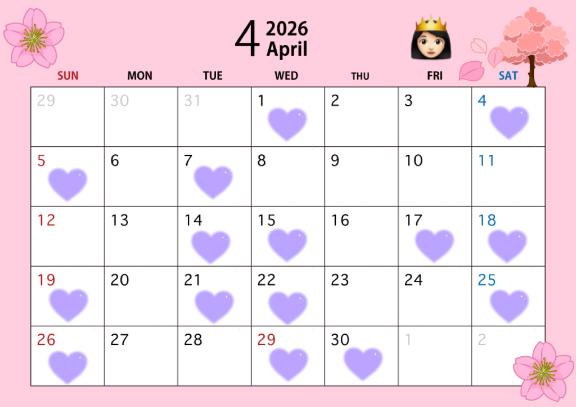 4月の出勤予定です👸🏻🛁